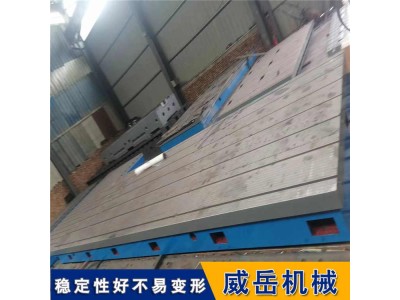 划线平台需采用 多点对称支撑,支撑点数量 = 平台长度 / 500mm+1,避免因自重或工件重量导致中部下垂;支撑面与地基之间垫防振橡胶垫,减少地基振动传导。长期使用的划线平台需用膨胀螺栓固定底座,尤其带 T 型槽的划线平台,避免工件拖动时平台移位,但固定力度需均匀,防止因紧固力不均导致基体变形。